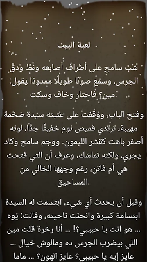 A new bouquet of stories that the knight of the short story "Youssef Idris" brings to us, in which he combined reality and imagination, and shed light on the small things, so they revealed a great value. In the story “The House Game” he takes us to the small world of childhood, full of innocence and simplicity; Where “Fatten” and “Sameh”, the two children who used to play together, until each of them became part of the other’s world, things have no meaning except by meeting them together. As for the story “The Curtain” that revolves around “Baheej”; We see in it a deep philosophical meaning about the obsessions that control its owner, which may lead to counterproductive results. Baheej was so jealous of his wife that he decided to make a curtain on the balcony to protect his wife from the eyes of the celibate neighbour, but the presence of the curtain had another action. And other worlds of «Idris» picturesque.