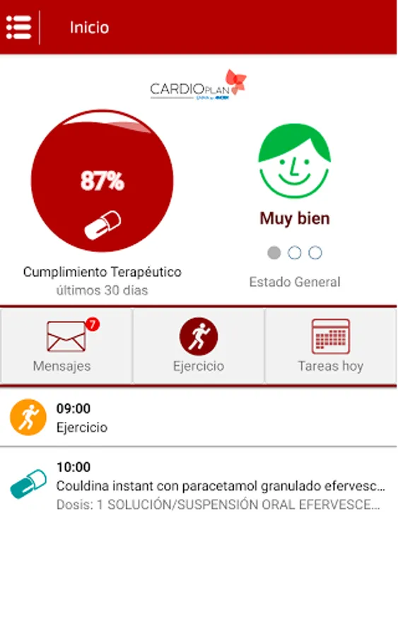 CardioPlan allows monitoring and support by cardiologists and other health professionals to patients in the process of cardiac treatment and rehabilitation. Through the mobile, the patient can access their data, prescriptions and agenda. You can modify and update self-checks, and you can communicate with your medical team. Thanks to this application, the healthcare professional can offer more personalized care remotely