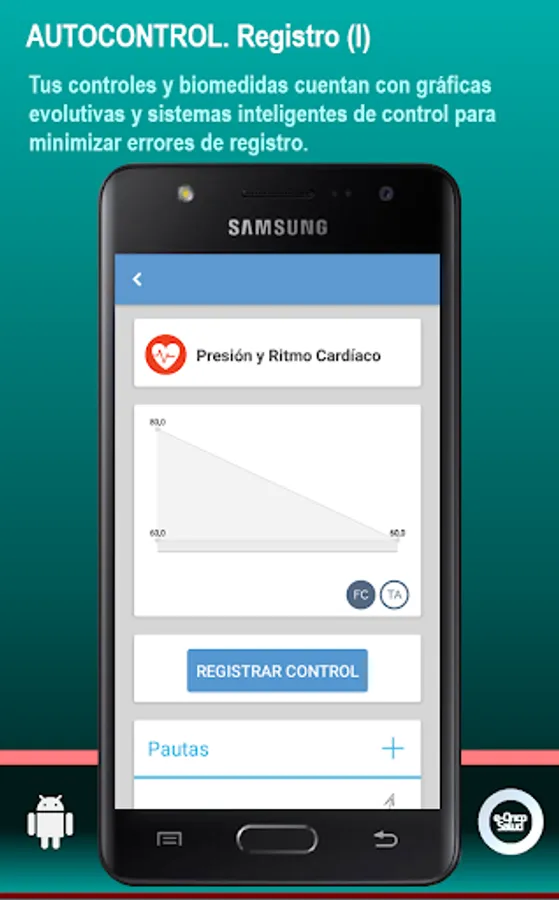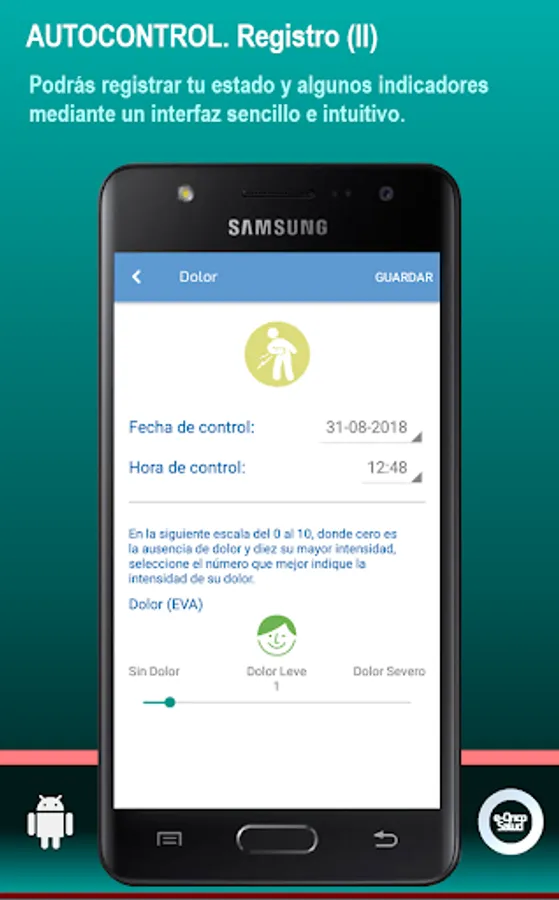 SELF-CONTROL. This module allows you to periodically control the main biometrics, such as weight, blood pressure, heart rate, temperature, etc. It also includes records of general condition, pain control and other evaluation and therapeutic compliance questionnaires. In some groups of patients, it will be integrated with a heart rate monitor via Bluetooth connection to control heart rate and blood pressure (in users affected by certain heart diseases).