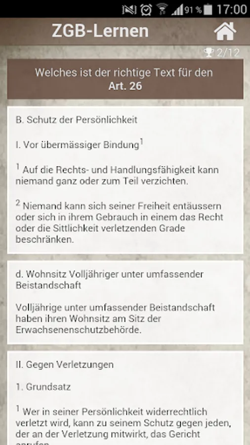 On the other hand it provides of its user or the user to a computerized quiz game, by which it can be checked, if you can arrange freely picked out laws items properly.