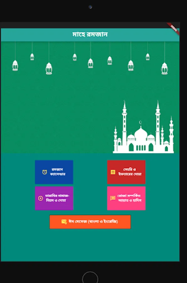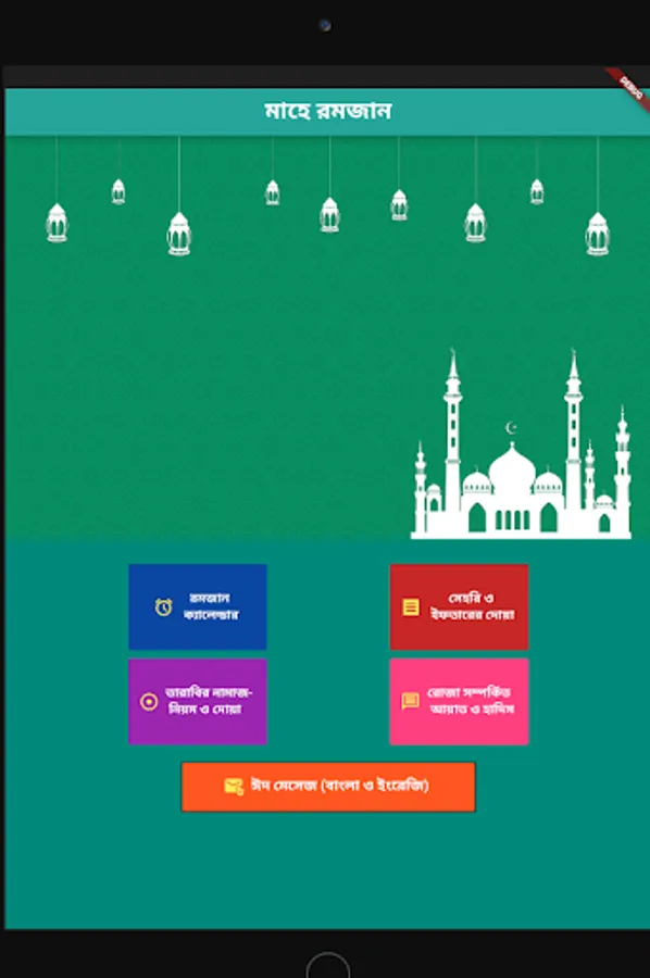 The app contains ramadan calendar for each division in Bangladesh. The app also has important Hadith related to Ramadan. Lastly, the app also has some Eid special messages.