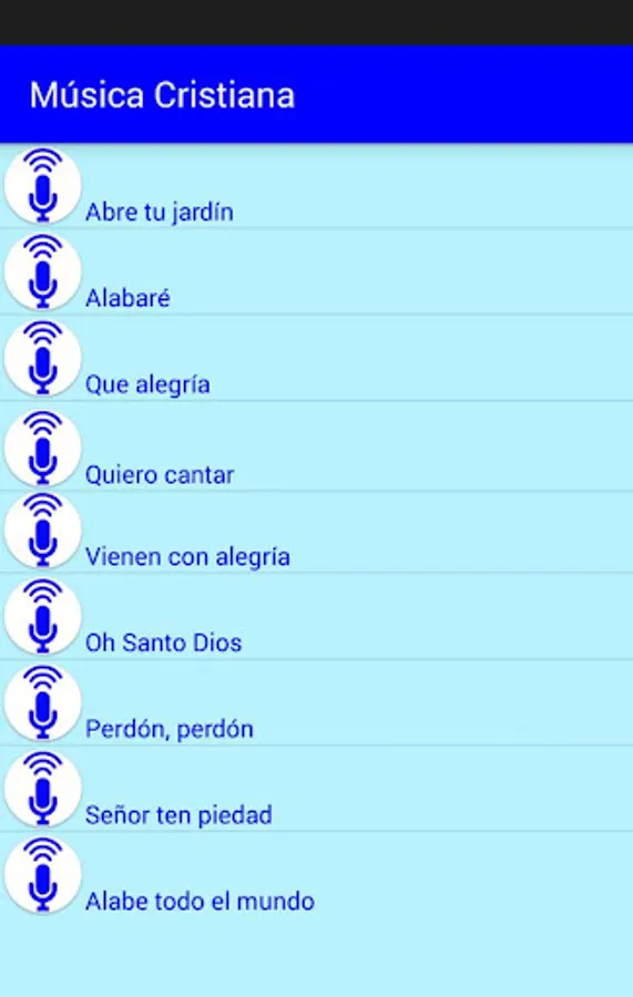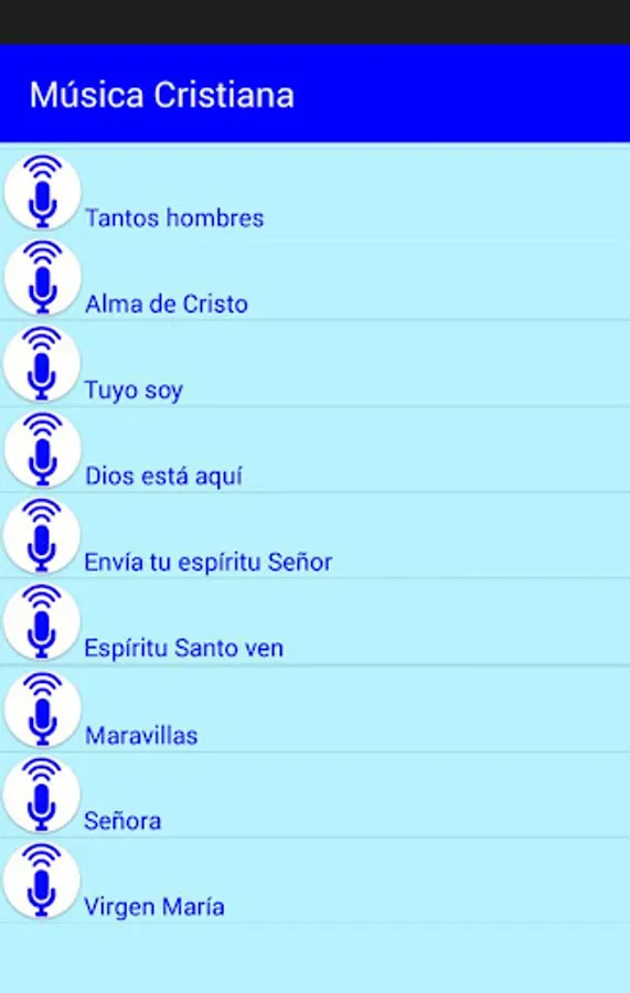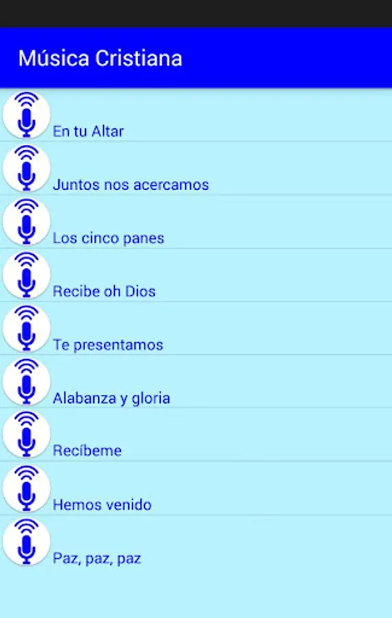 This app allows you to play, stop, pause and replay the songs whenever you want. Also, you can return, at any time, to the main menu to see the complete list of songs, and select the one you want again.