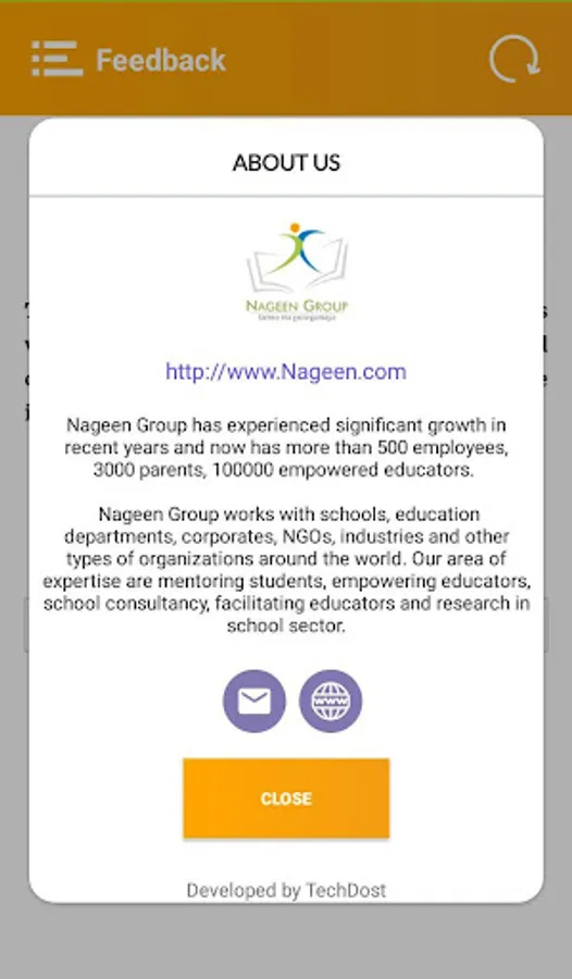 This app allows all the schools under 'Nageen Group' to get feedback from parents and visitors.