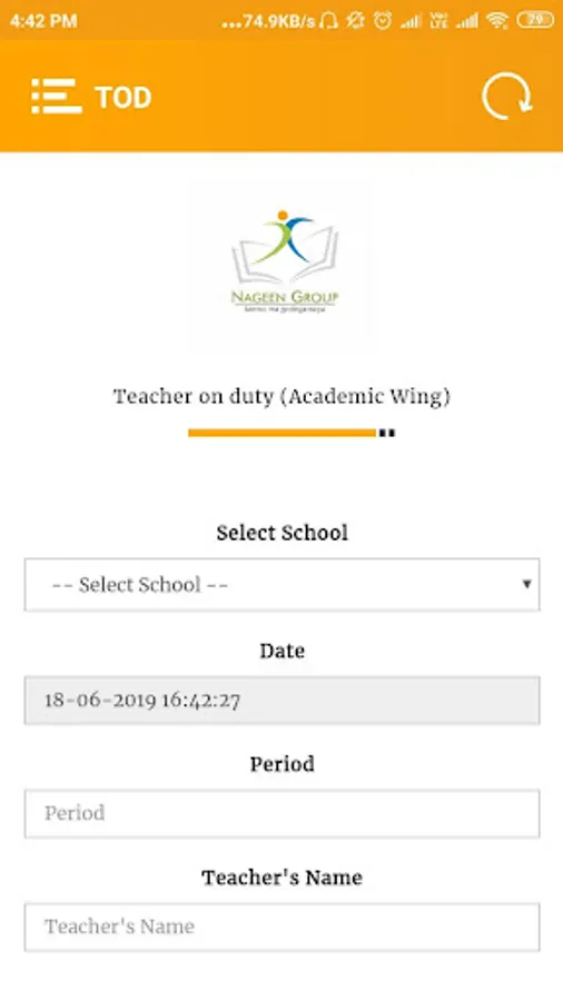 TOD (Teacher on Duty) is an exclusive app by Nageen group of schools to get complaints from anyone in any school regarding students, cleanliness, etc...