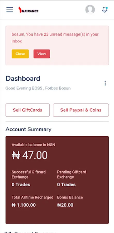 Nairance is the best modern platform that help you Swap your bitcoin and gift cards to cash instantly and also allow you to Recharge your mobile phones, Reconnect or pay your internet services fee easily without having an headache and Pay all utility bills.