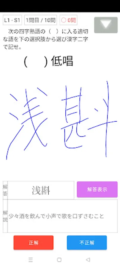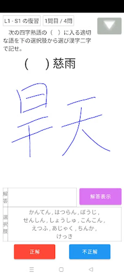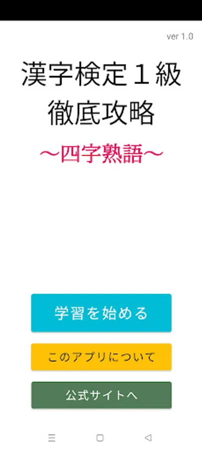 ``Kanji Exam Level 1 Thorough Strategy Four-character Idioms'' is an app developed by an active teacher to help you study for the Kanji Exam efficiently.