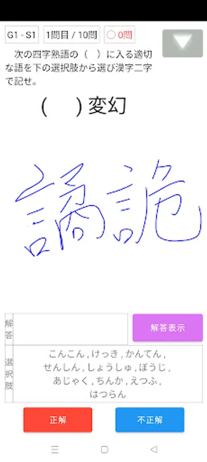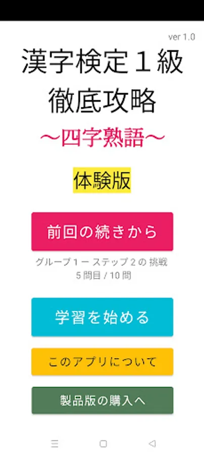 This app is a trial version of "Kanken Level 1 Thorough Strategy Four-character Idioms".