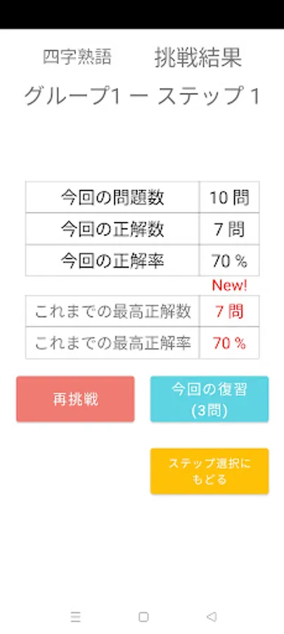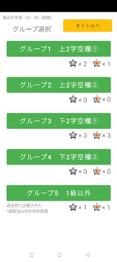 ・ Level 5: Other than 1st grade (four-character idioms other than 1st grade dividends given in past questions) (1 step learning is possible in the trial version)