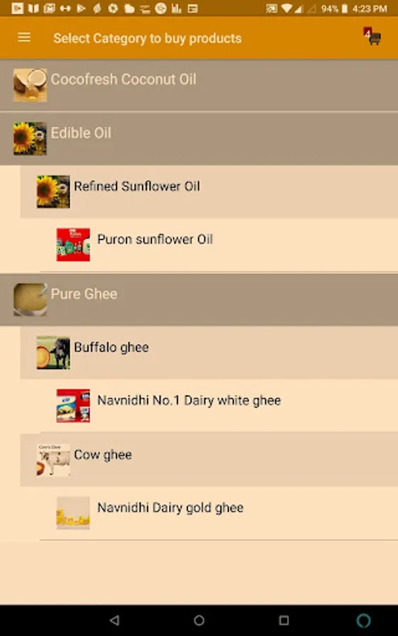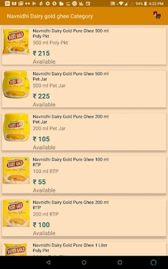 This app is online shopping for Dairy products like pure ghee, skimmed milk powder, edible oil, coconut oil.