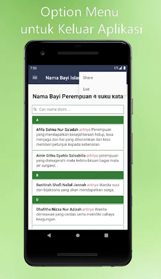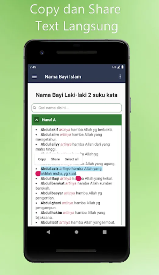 This application Islamic Baby Names and Meanings is a collection of various sources of Islamic baby names both male Islamic baby names and female baby names . We summarize to make it easier to find the name as desired.