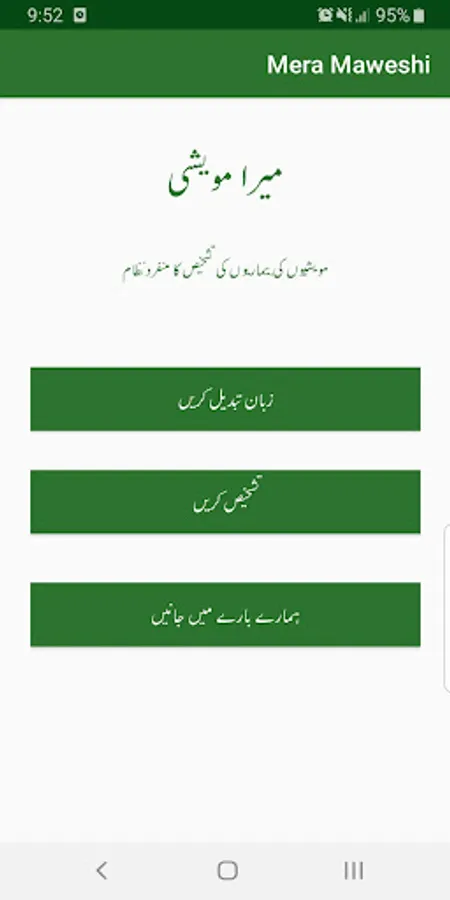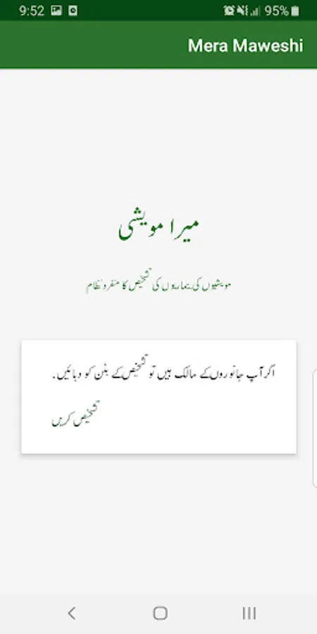 Mera Maweshi is an artificial intelligence based disease diagnosis application (available as Android application as well as website) for livestock in rural Pakistan. Its aim is to assist the farmers in diagnosing more than 30 diseases of cows, buffalos, goats and sheep in Pakistan which don't involve pathological or surgical interventions. Most of the these diseases can be diagnosed based on the symptoms which a farmer can feed through easy to use interfaces in Urdu as well as English. This product has been developed at Namal Institute Mianwali with the financial support of Ignite - National Technology Fund of Government of Pakistan. The collaborating institutes include LUMS, UVAS and Livestock Department of Government of Punjab. For details, please visit: www.meramaweshi.com