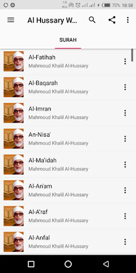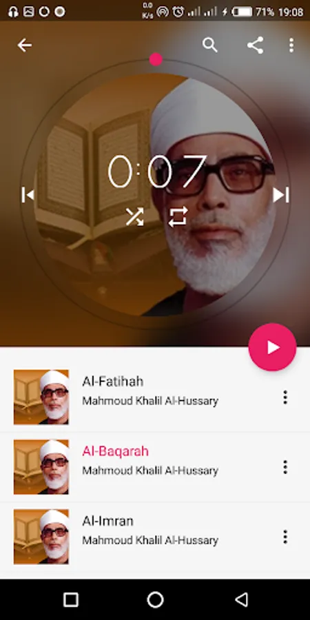 Provides Complete Audio Quran by Al-Hussary (Warsh) with advanced audio player feautures. such as: