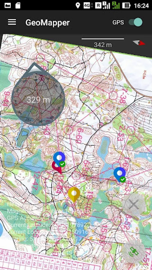 - GeoMapper can lead you to the desired place. It will show you the direction to move and the distance left to go in real time (if your device has a magnetic sensor).