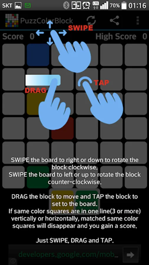 SWIPE the board to left or up to rotate the block counter-clockwise.