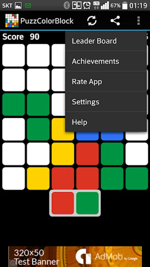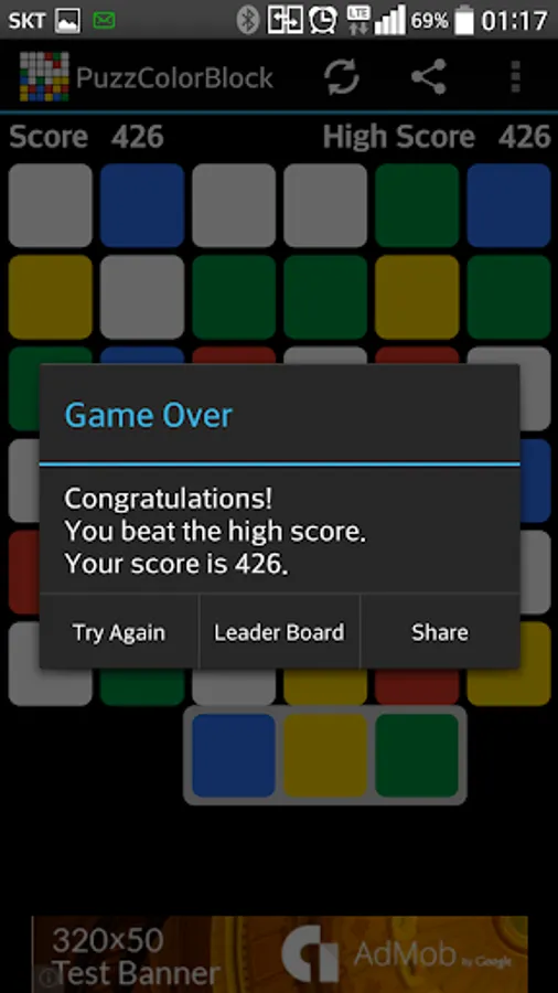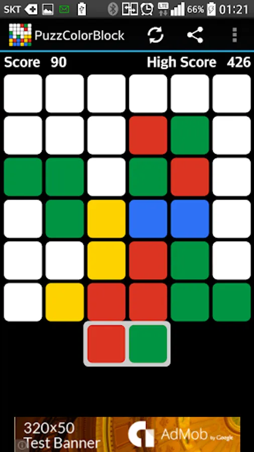 If same color squares are in one line(3 or more) vertically or horizontally, matched same color squares will disappear and you gain a score.