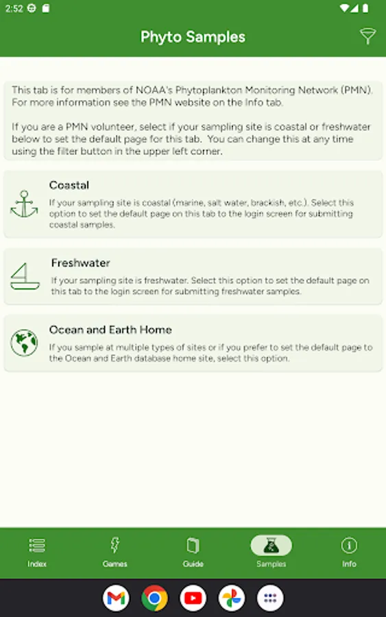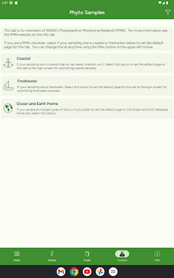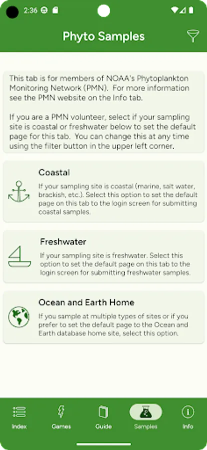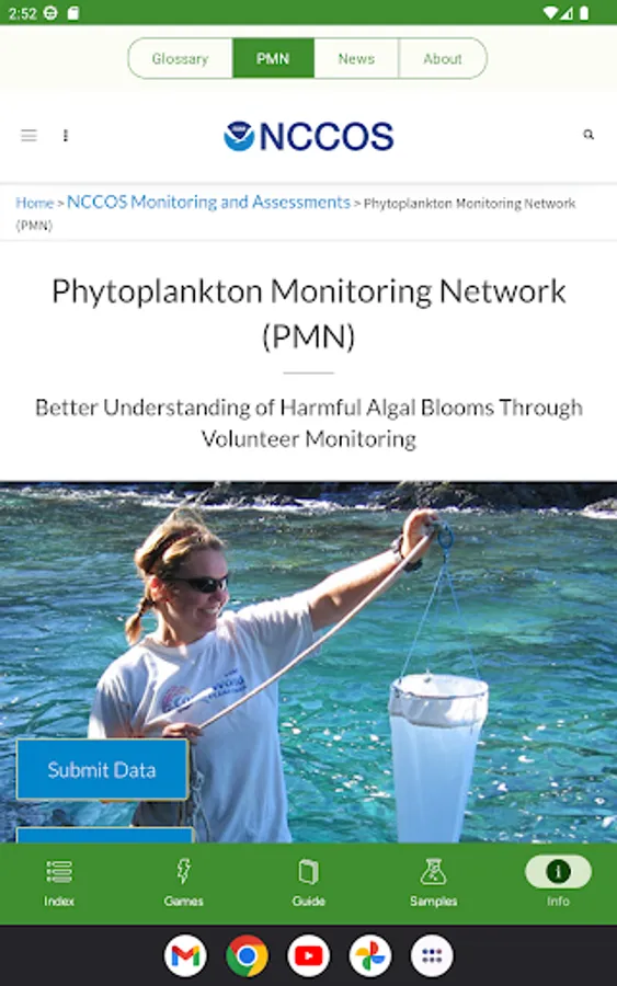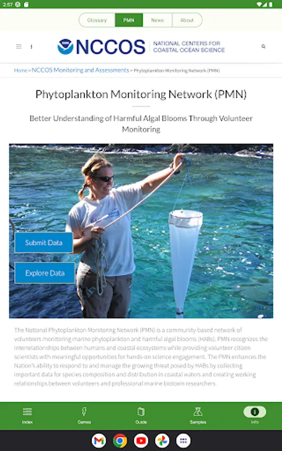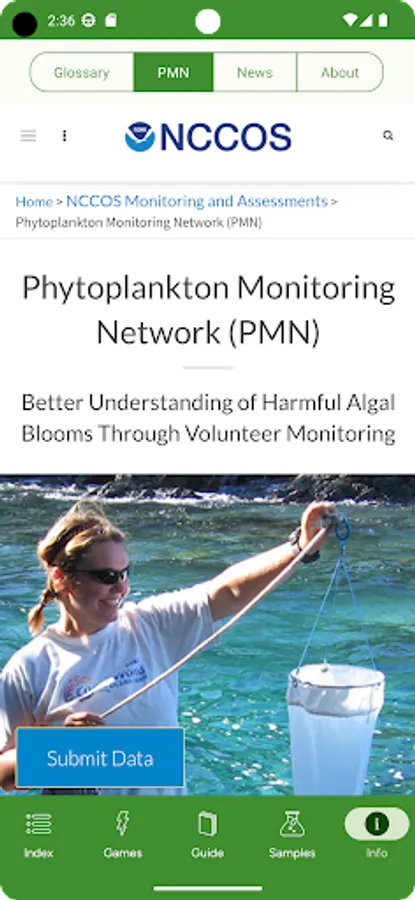 - Phytoplankton Monitoring Network volunteers can submit sample observation results