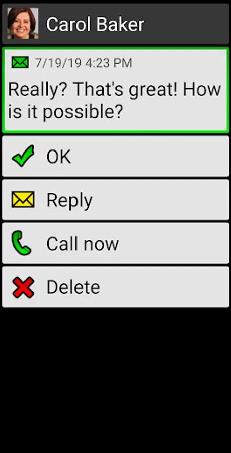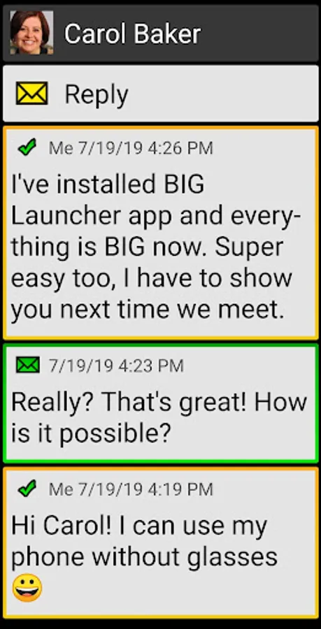 🔹 high contrast color schemes and three different font sizes allow you to use your phone without glasses.