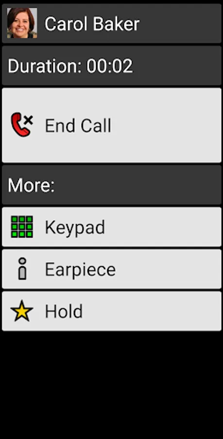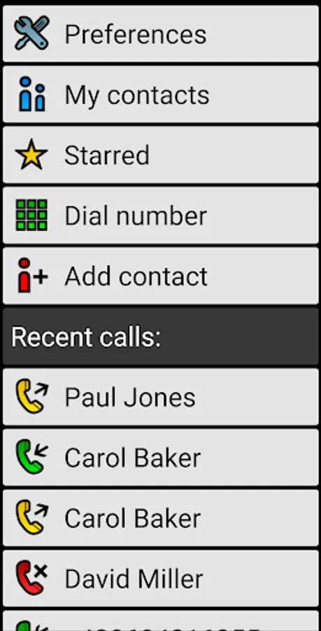 📞 basic phone functions (including enlarged dialer) are accessible in a simple interface