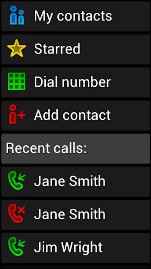 🔹 high contrast color schemes and three different font sizes allow you to use your phone without glasses.