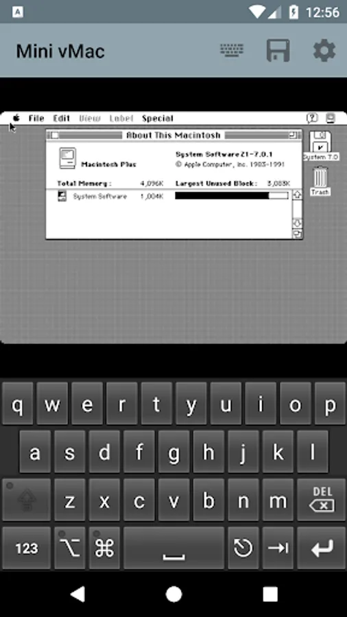This is a port of the Mini vMac emulator for the Android platform. It supports almost any Android device, starting from android version 1.6.