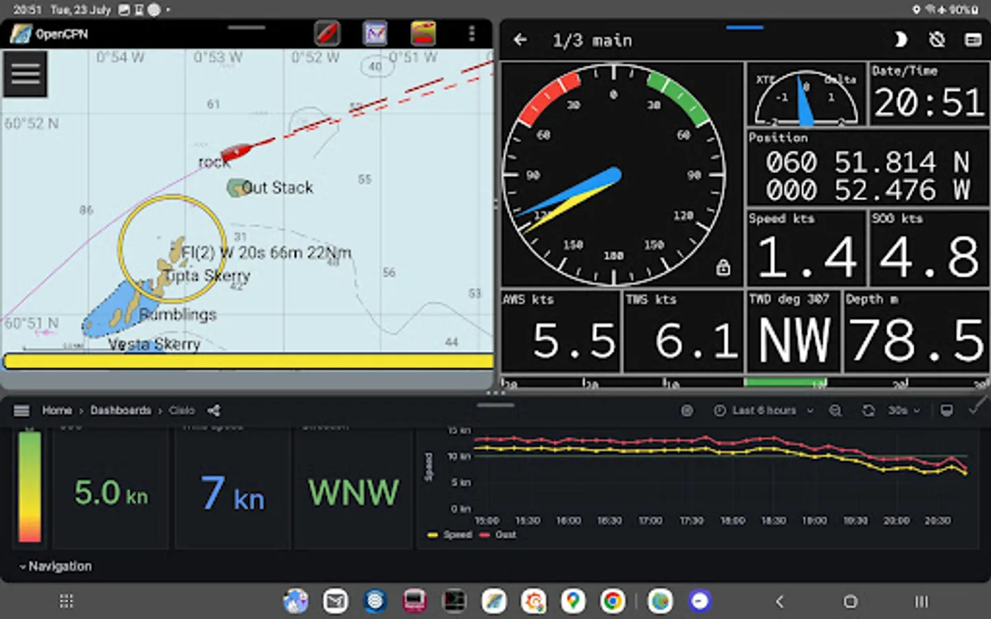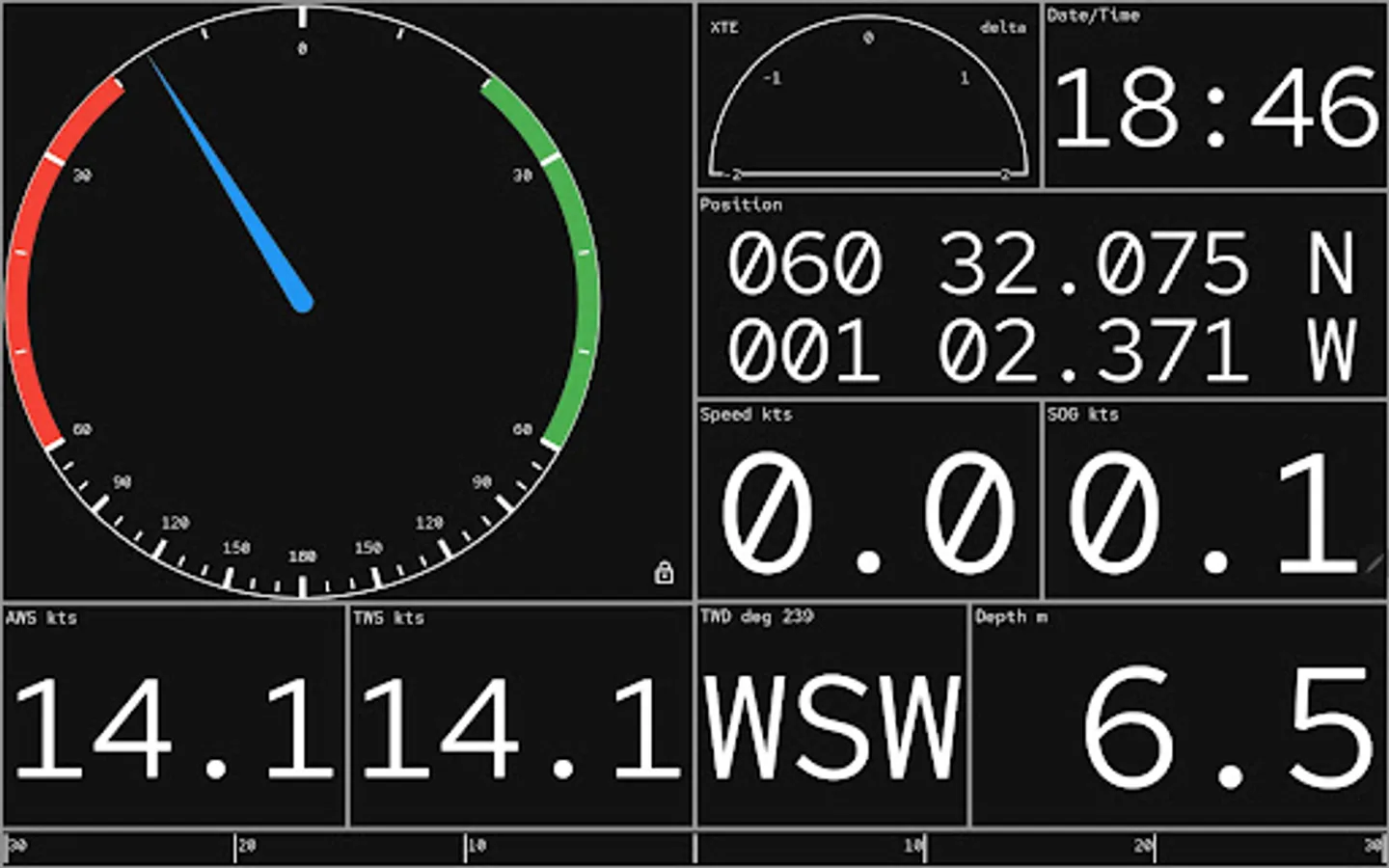 A Boat Instrument for displaying data in fully configurable Boxes. The data is received via a subscription to a SignalK server.
