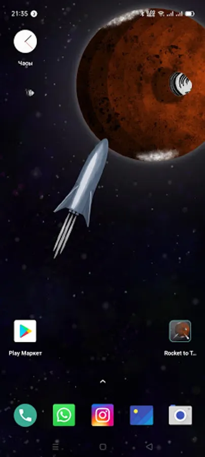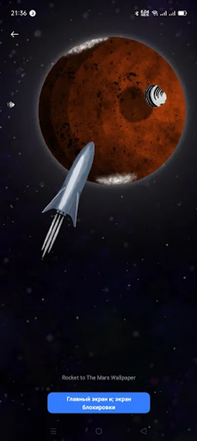 Live animated 3D wallpapers for desktop and lock screen “Rocket to The Mars Wallpaper” - space travel in your smartphone. The starry sky, state-of-the-art rocket, and the red planet gain dynamics and three-dimensional depth due to the parallax effect.