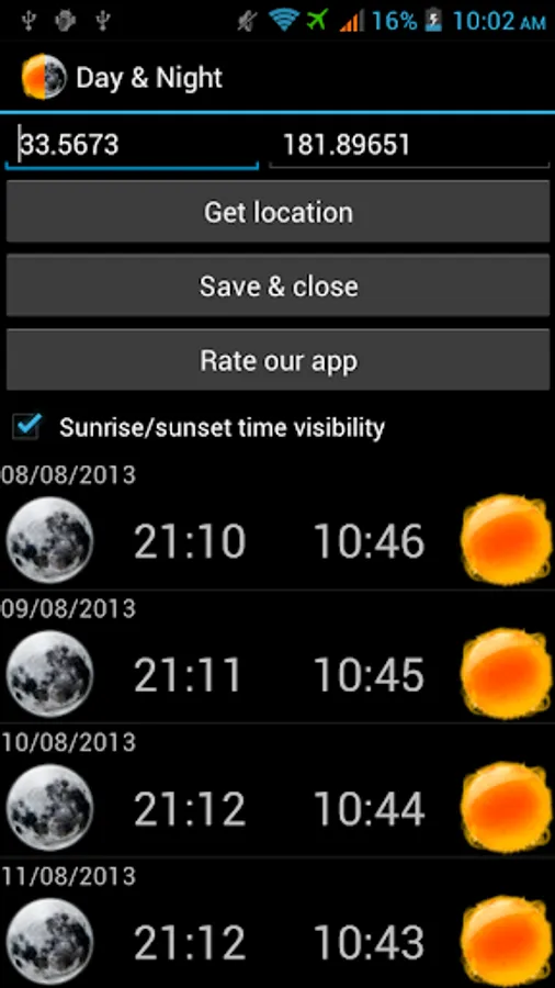 This app is intended for those who want to support the developer, everyone else can use the application "Day and Night (free)", both functional applications are identical, both applications will receive enhancements. The only difference is the presence of the advertising block in the settings.
