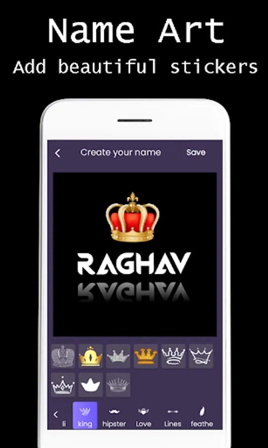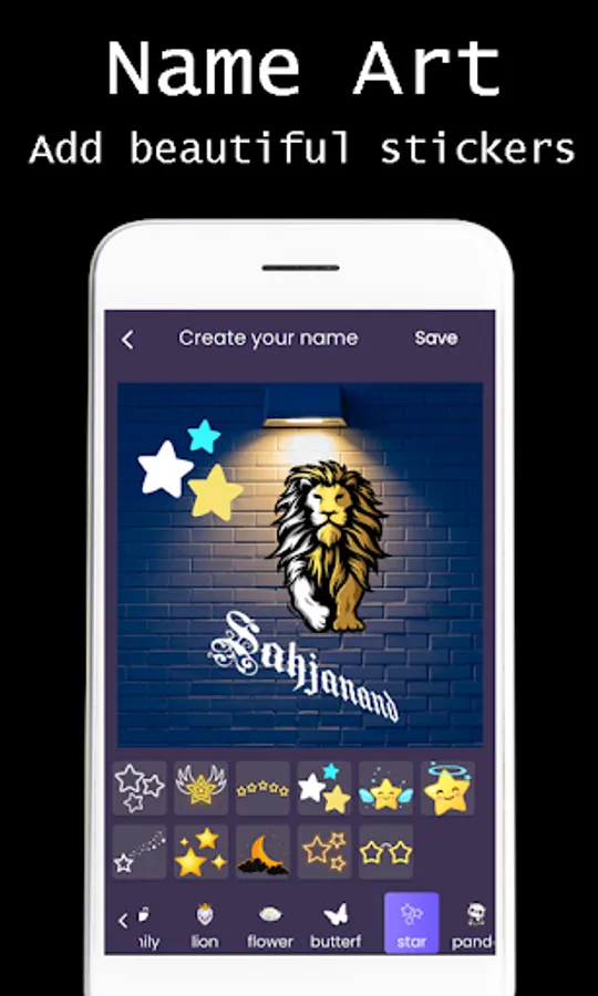 Name Art Makers comes with fonts and styles, Stickers to decorate your name, Create Mirror Name Pics with different Styles and Colors and decorate with Picture Stickers. Stickers categories include Love Stickers, Baby Stickers for Baby Names and 100's of Emoji Stickers.