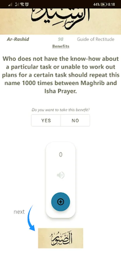 This application is designed and aimed at people who want to take advantage of the Zikr (deep repetition) of the names of Allah.