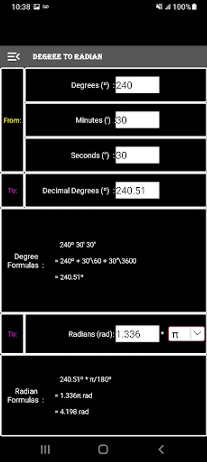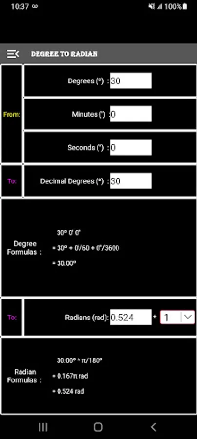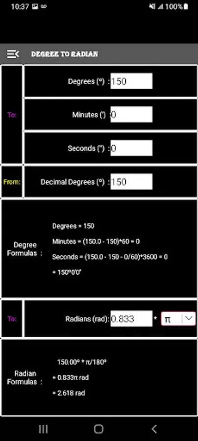 This application is made to provide a simple conversion among degree, decimal degree, and radian.