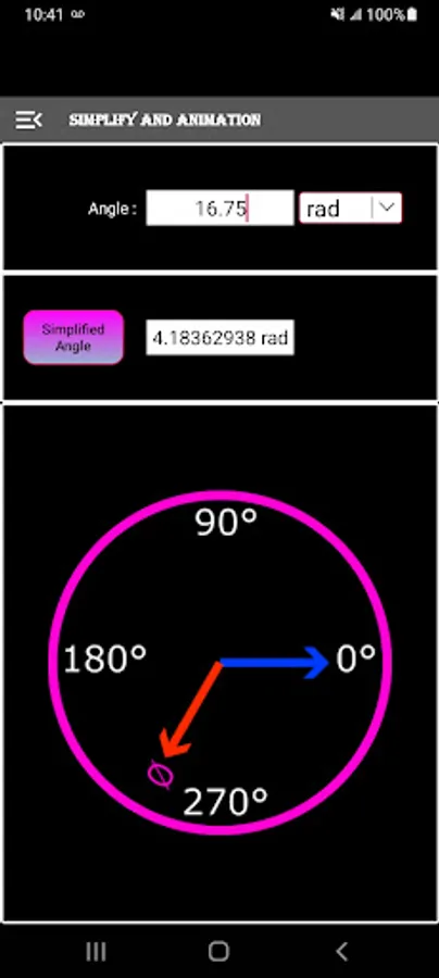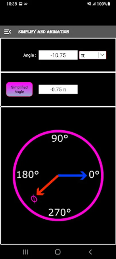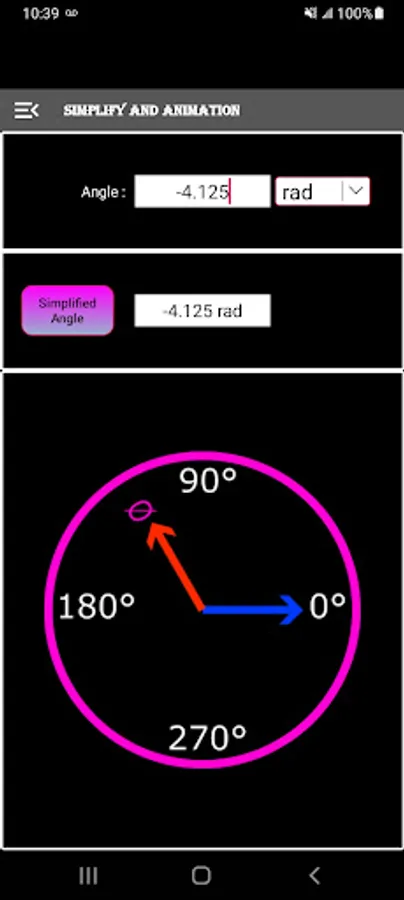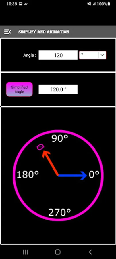 Our team also provide and angle animation tool. This special tool help user figure out how their angle look like on 360 degree circle. For instance, positive angle will have animation turning in counterclockwise, and negative angle is present by clockwise animation.