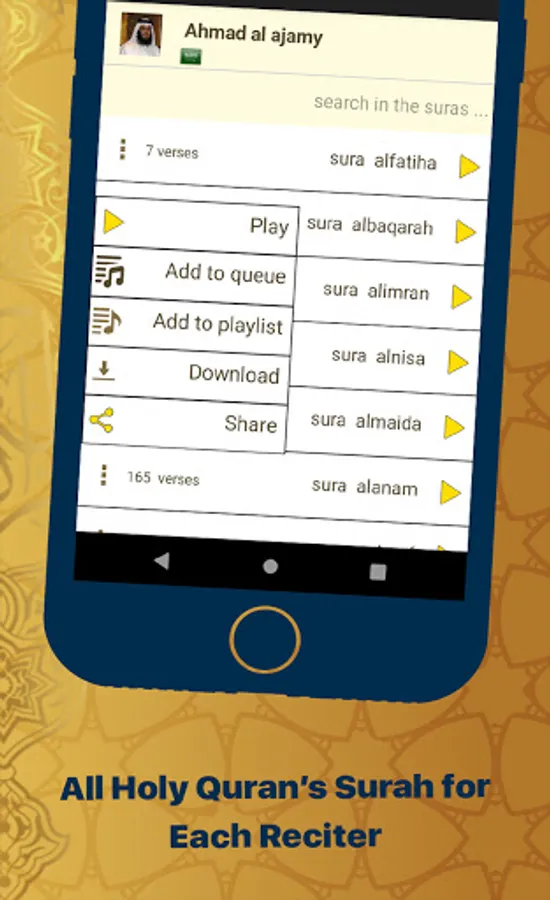 There's all Holy Quran Surah for each reciter - Surah Yaseen, Surah Rahman, Surah Mulk, Last 20 surah of Quran with Urdu translation-.