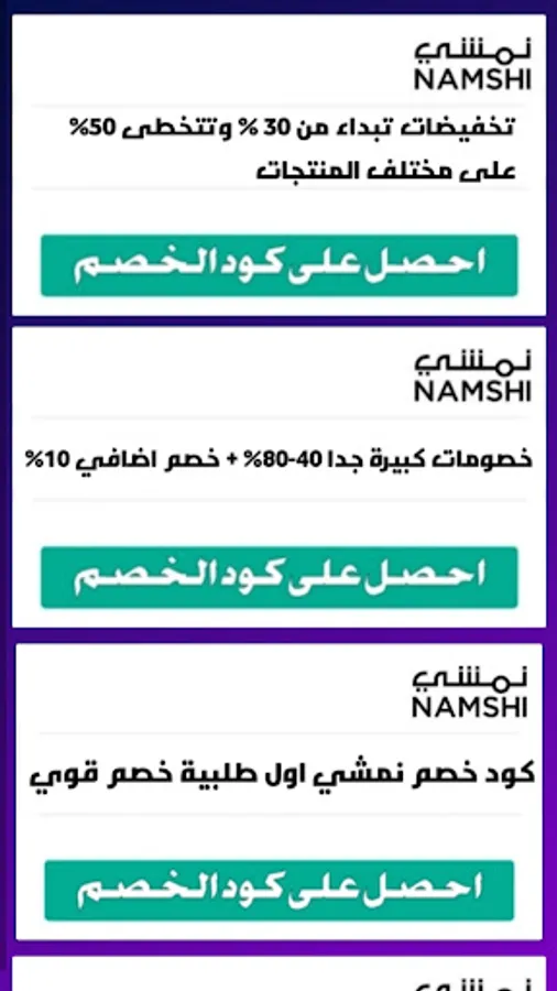 A strong Namshi discount code, the offers that we display in the application reach up to 80%, we wish you a good time