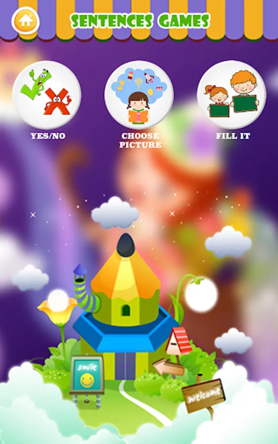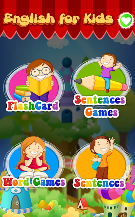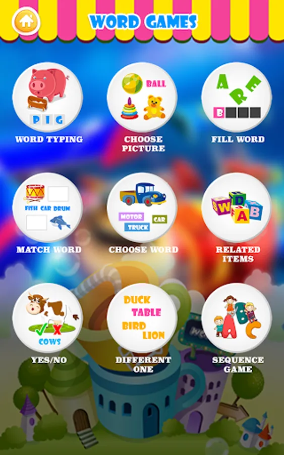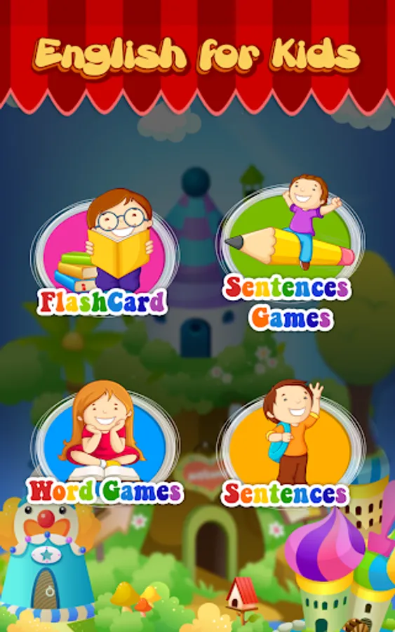 Word Games, Sentence Games are two main parts with ambition to help children can memorize new words and sentences for long time. Games with beautiful pictures and sound help our children learn with fun.
