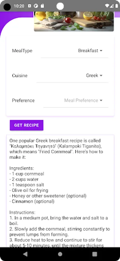 MyChef is a AI driven personal chef on your phone to get recipes from multiple cuisines on-demand.