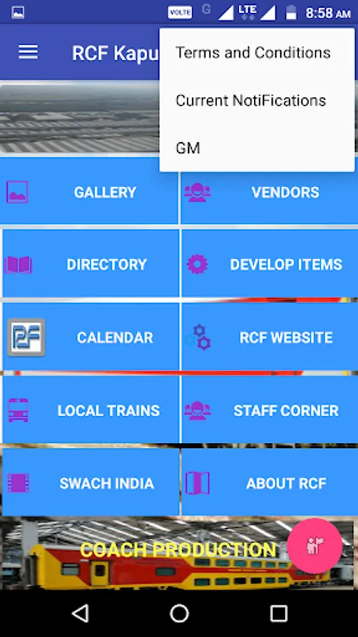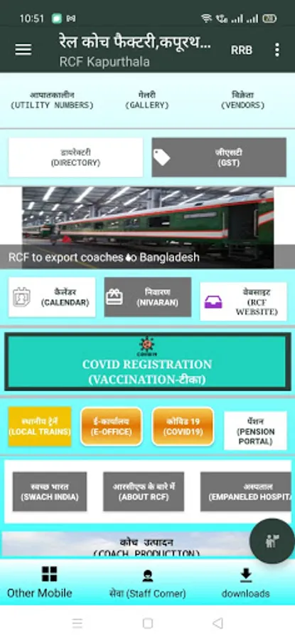 RCF App, being published & maintained by Rail Coach Factory, Kapurthala, a Production Unit of Indian Railways, Government of India. It is the first in-house developed Android Mobile Application of Indian railways, mainly provides...