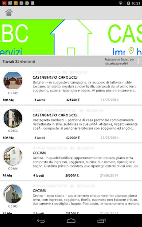 'ABC HOUSE' Real Estate Services, is a real estate agency that operates in Tuscany, mainly in the province of Livorno and Pisa, along the coast of the Etruscan Coast ranging from Quercianella in Castagneto Carducci and which extends inland in the countryside of Lower Val di Cecina and the Pisan hills. The vastness of the area involved is given by the synergy between two different locations, one in Rosignano Solvay and the other in the center of Cecina, who cooperate with them, but at the same time, offer a comprehensive and direct with local of the territory. The work covers all categories of property: from residential apartments to cottages, from land to rustic, from villas to country houses, not to mention the field of activities and funds distribution and craft.