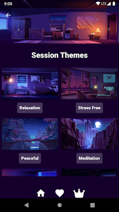 The app provides meditation and mental health care in a short period of time through an intuitive user interface with six meditation themes to choose from: Relaxation, Stress Free, Peaceful, Meditation, Sleep, and Motivation.