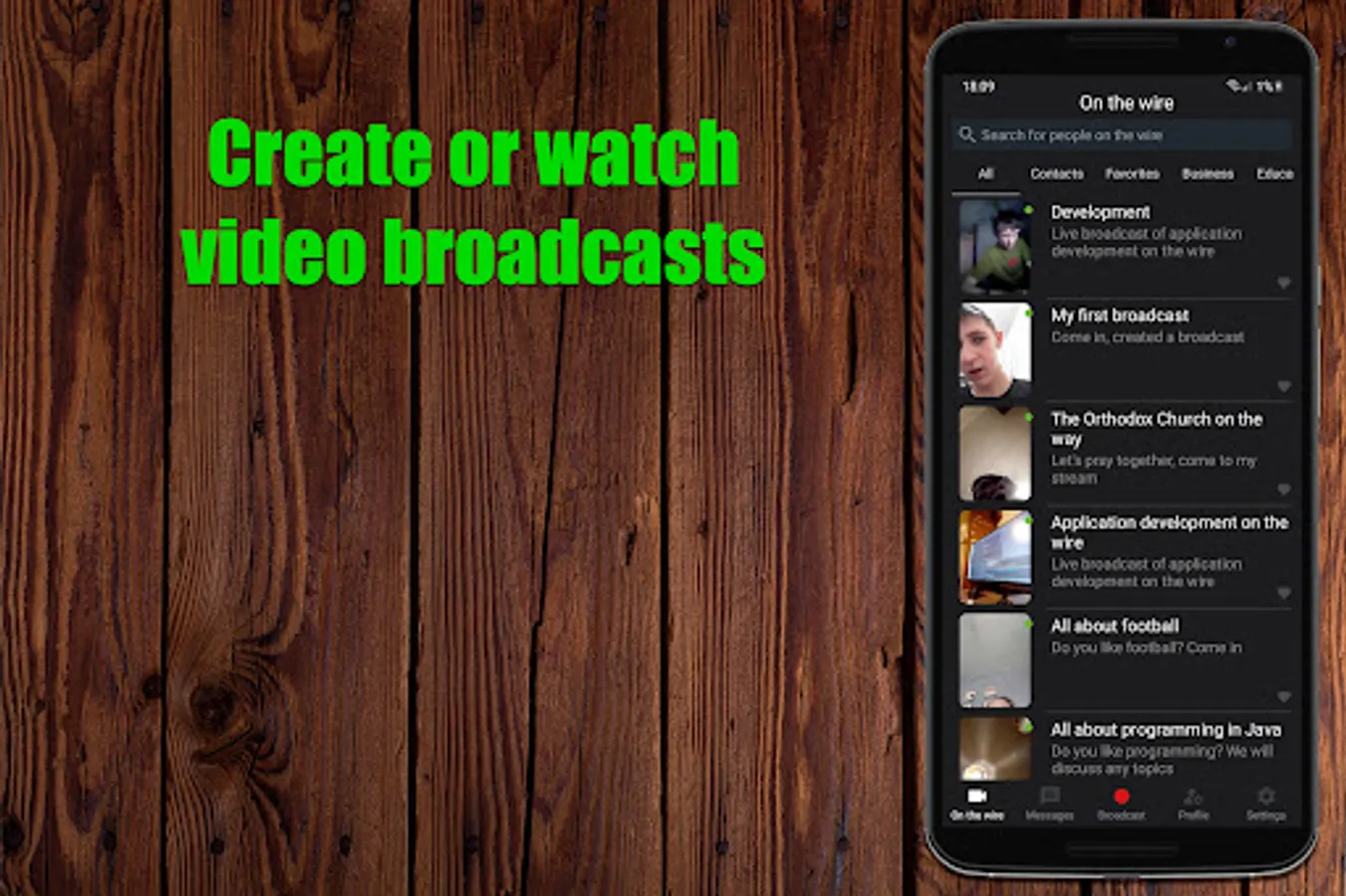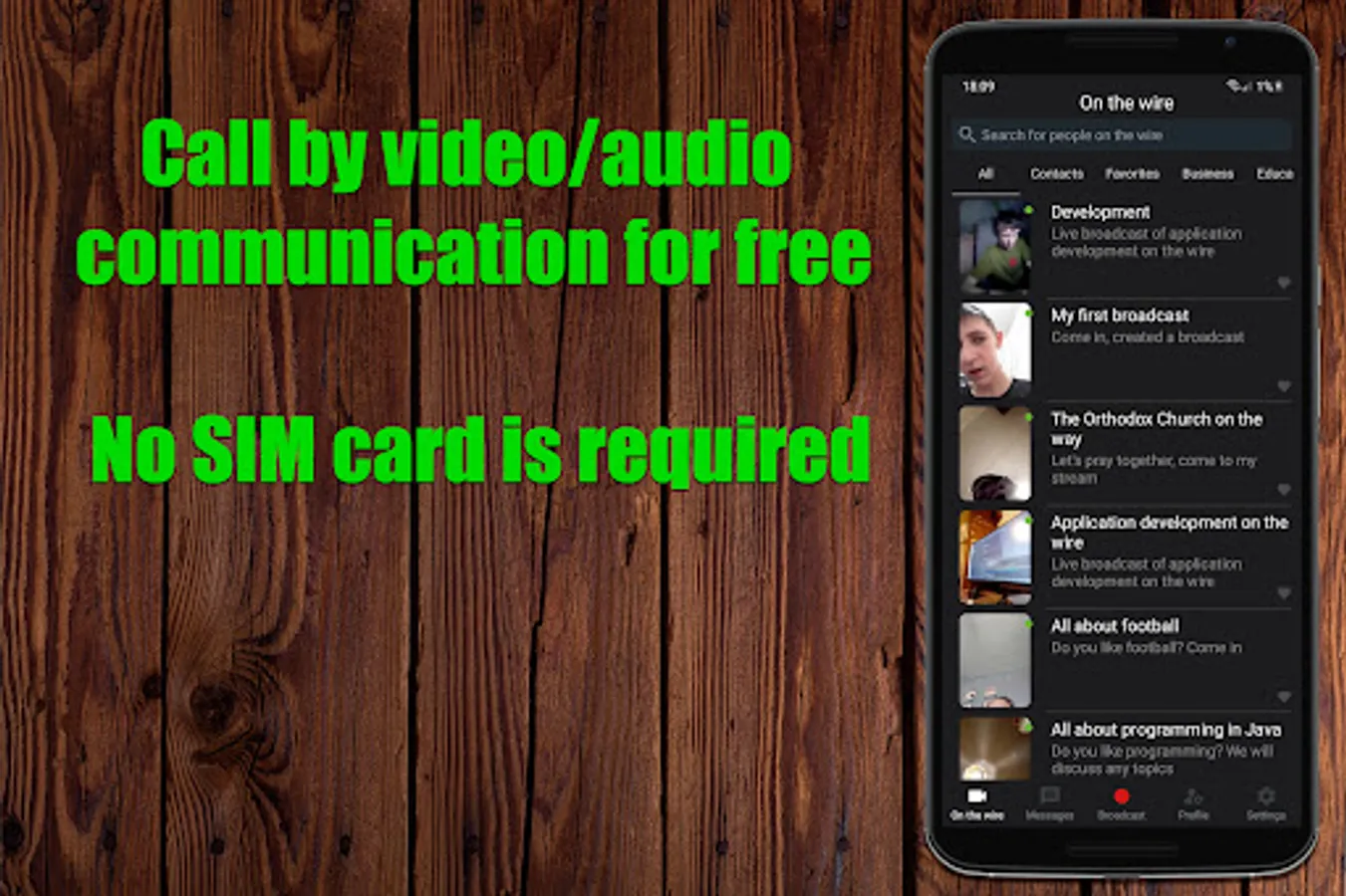 On the Contacts tab, you can select from your notebook any person who has installed the application on the wire and call him by audio or video absolutely free and anonymously. All data is transmitted over an encrypted communication channel.