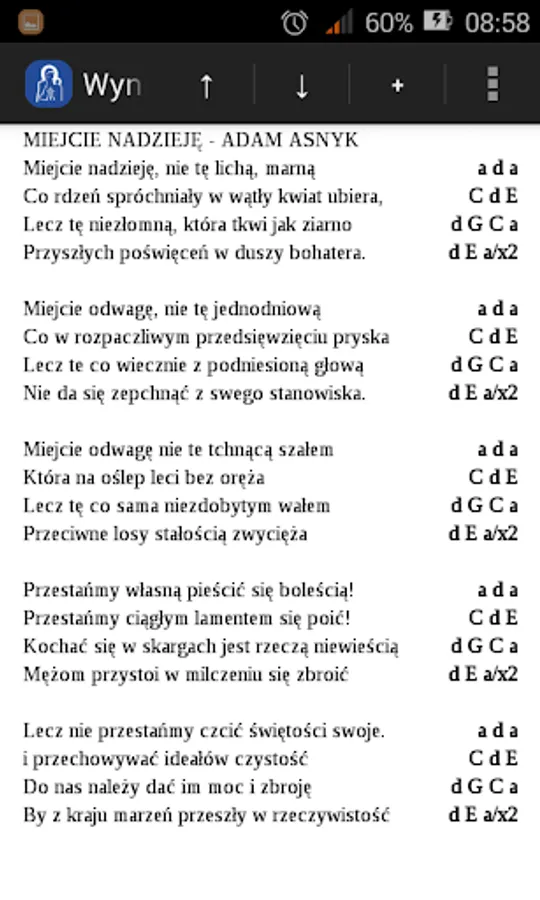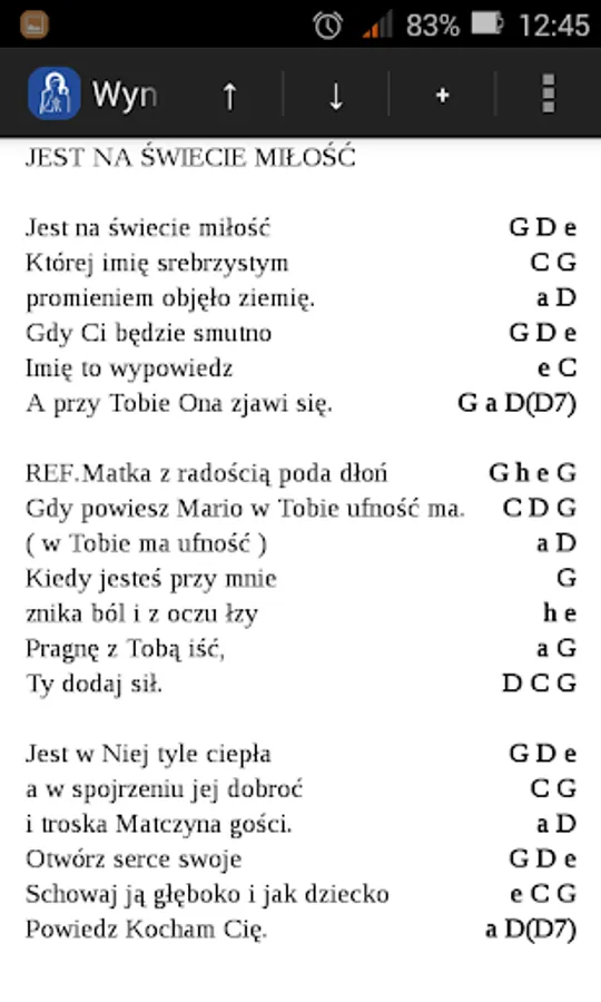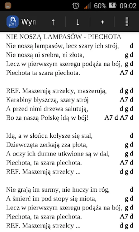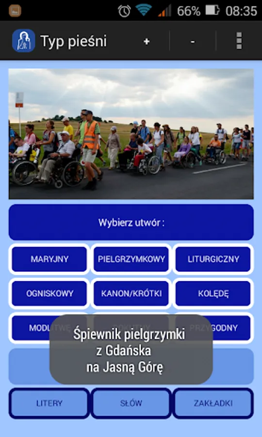 The GPP songbook of the Gdańsk Pedestrian Pilgrimage to Jasna Góra contains over 500 songs with guitar grips, testimonies and prayers. You can easily search by the first words of the song or a piece of text. It is possible to transpose guitar grips into a more musical tone. The option of creating dynamic lists - summaries - has been implemented that can facilitate the musical rape of the Holy Mass or other prayer practiced also on the pilgrimage route.