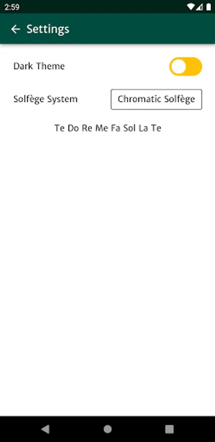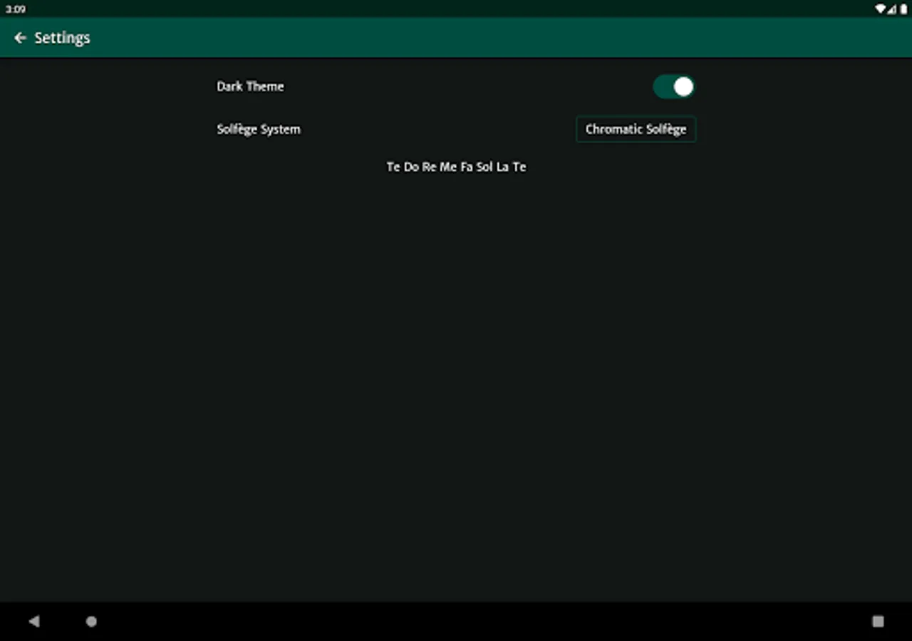 Solfege system choices are, English, Italian and Chromatic Solfege. The app will then display all note names in the chosen solfege system.