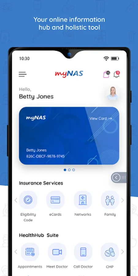 myNAS App is dedicated for NAS Cardholders. It is designed to provide access to useful functionalities and a range of information about their health Insurance policies. It is designed to enhance the member experience and to allow access to key features including: