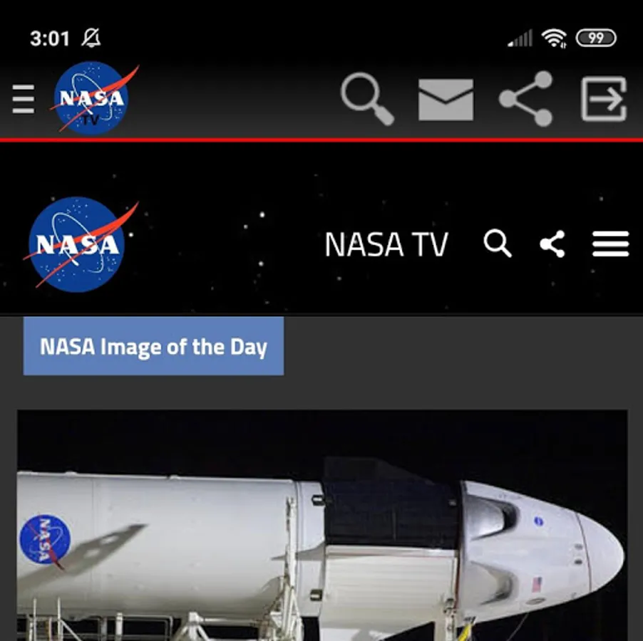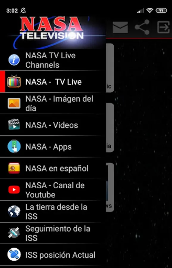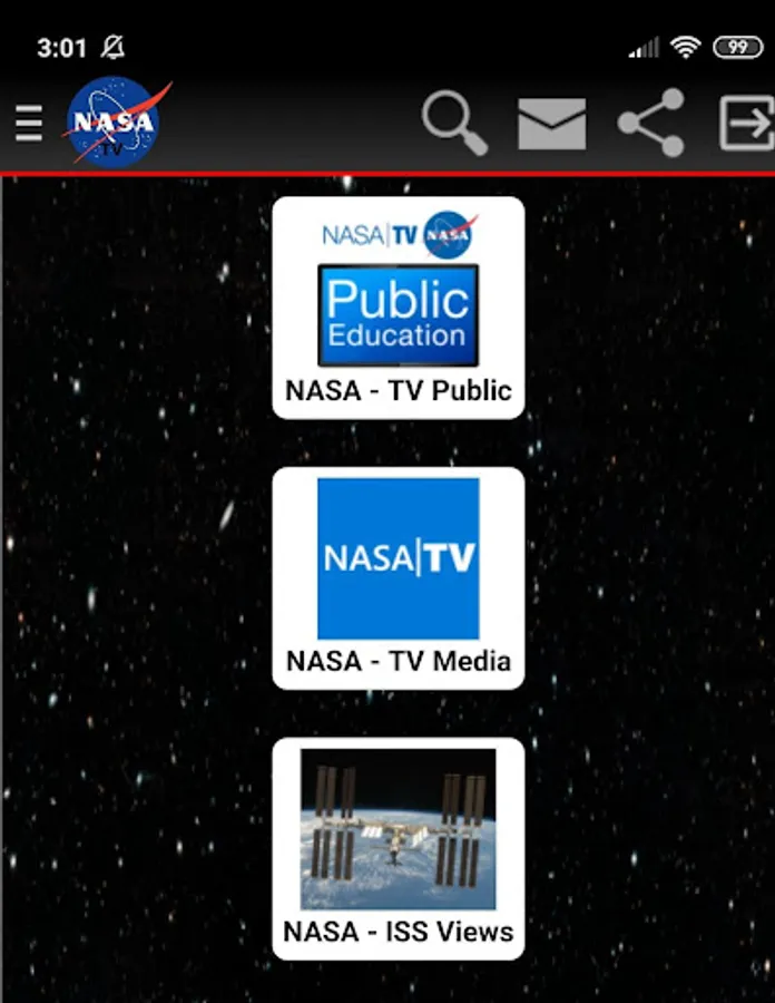 NASA TV live channels is an application that gathers resources from the best NASA channels in Spanish. It also includes three live TV channels (in English) and links to lots of resources such as images of space taken with the Hubble telescope, or educational games for the little ones.