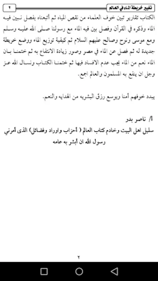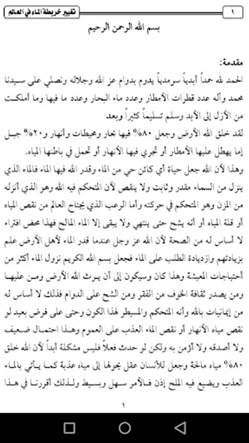 And this is because God has made the life of any living organism from the water, and God forbid the water. Water, which come down from the estimator and the constant sky and does not diminish because the uncontrolled God and is the one who sent down from Mozn and is in control of his movement and the horror that gripped the world from a lack of water or lack of water or it is scarce until it is finished and does not remain only salty water, this pure fabrication him unfounded because God Almighty when as much water to the people of Earth science Bxiaodthm and the increasing demand for water and started the name of God, the holy water going down more than the needs of living this was and will be until God inherits the earth and from them, and from a culture of fear issues of poverty and the scarcity on the Time That has no basis Aimaniat in God and that he controlled and controlling of the universe, and even on a remote imposing if river water shortage or lack of water fresh on the whole and the possibility of a weak and do not believe him, and I do not believe it, but if it really happened is not never a problem because God created 80% salt water and making the human mind turns it into fresh water also comes with fresh water and put the salt E., independent since things are easy and simple, and so we adopted in this book reports show the fear of scientists from the lack of water and then we followed the separation show the water and mentioned in the Koran and the separation of the water with our Prophet peace be upon him, and with Moses and Noah, and in favor of peace on them and then how to distribute a Water and put a new map, and then separated from the water in Egypt and photos to increase utilization by then Khtmana that the water from the grace of God should not be corruption in which the book and then Khtmana WQA God Almighty to benefit Muslims and the whole world.