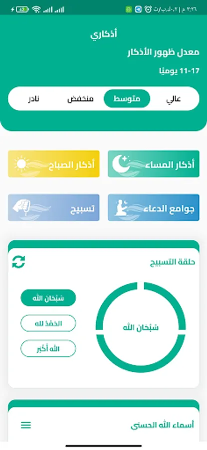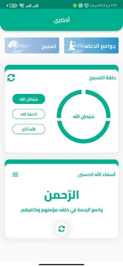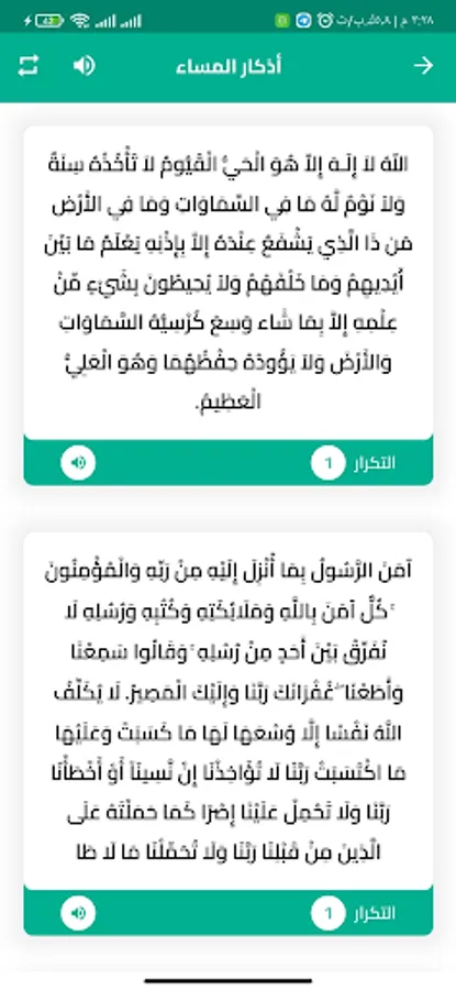 An application that displays evening, morning, and evening remembrances, and other remembrances, text and audio, and contains an electronic prayer beads