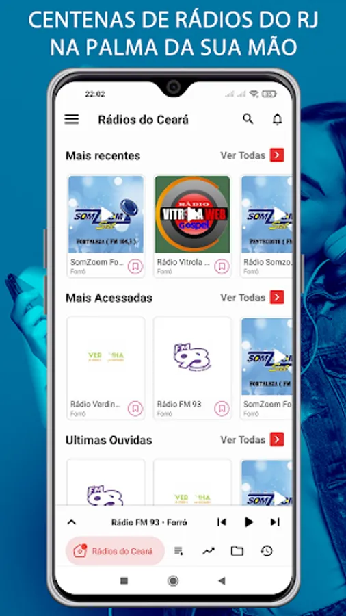 In it you listen to the online radio of Ceará of diverse categories as Pop-Rock, Gospel, Soccer, Sertanejas, Axé, Forró, Sports, Journalism, Catholic, Eclectic and Community.