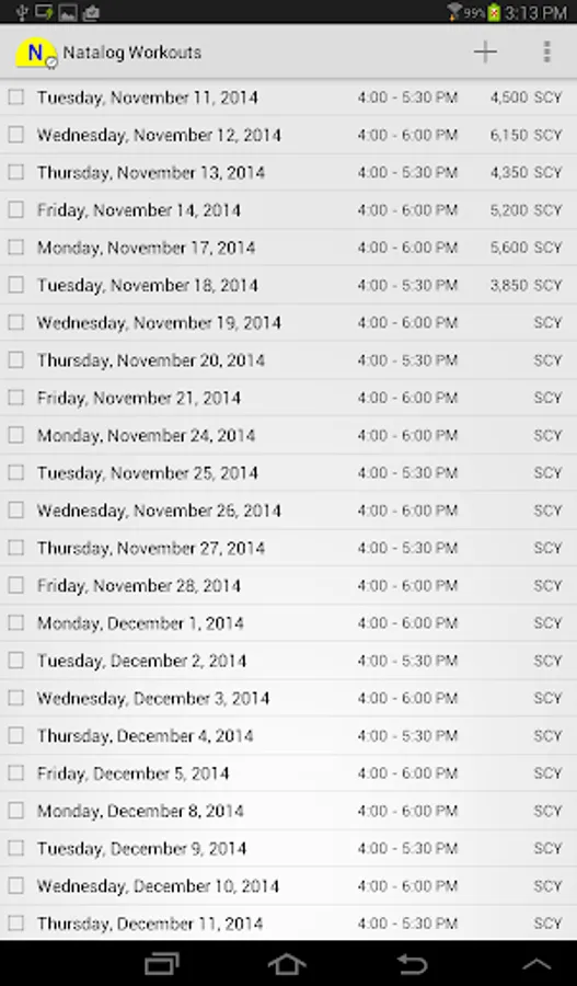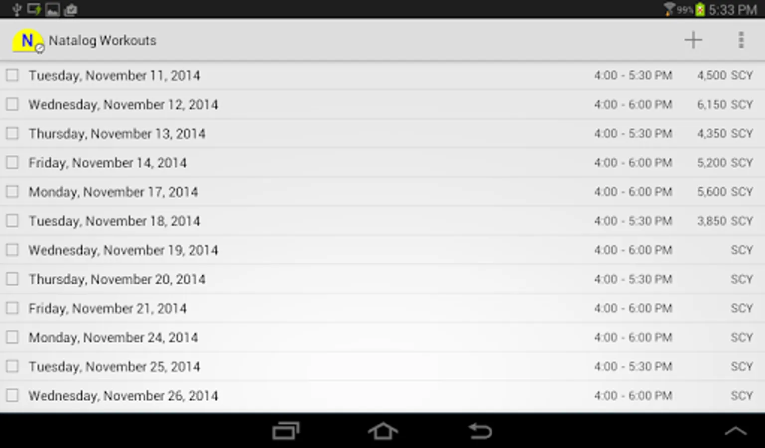 Natalog Workouts is an Android app that allows swimmers and swim coaches to log swim practices and write workouts. It is great for all levels of competitive swimming, including age group, high school, college, and masters.