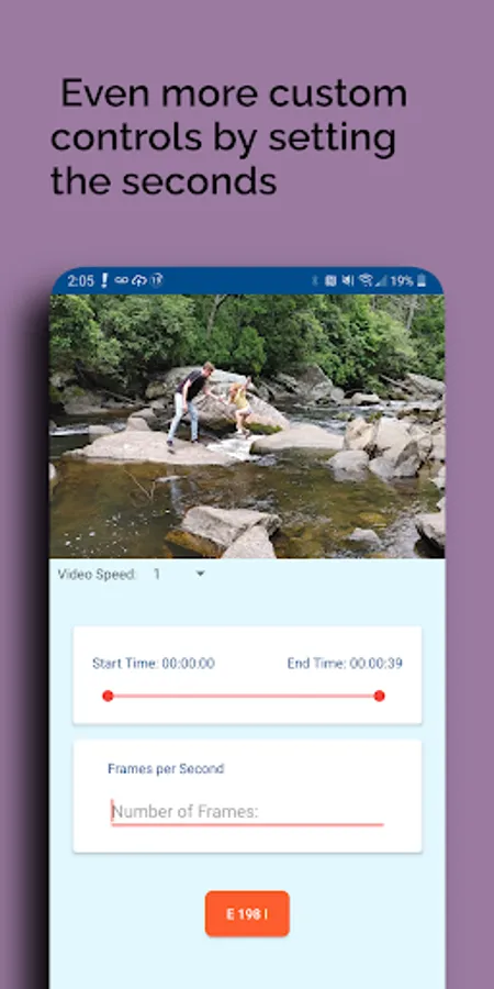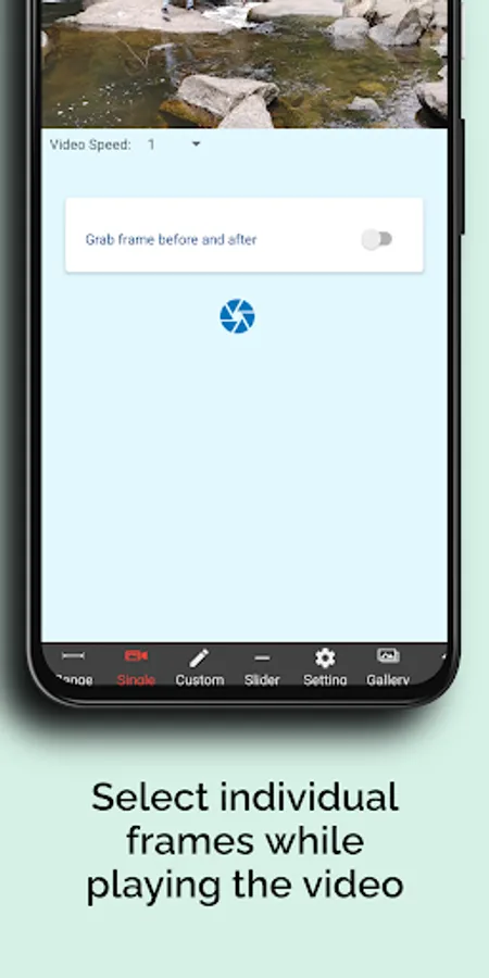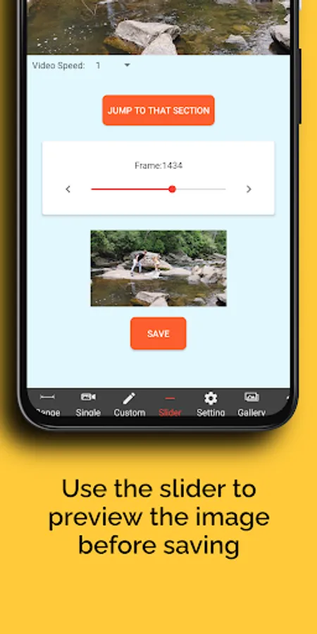 Extract photos from your video. Just import a video from your device and you can either take a frame from your video at a position or take a range of photos from your videos. Set the start and end range of the video plus how many frames you want to extract. All the images from the video will be placed on your phone. The resolution of the images removed from the video are the same size (dimensions) of the video.