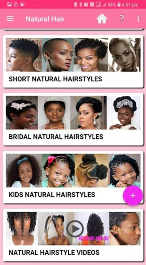 This app shows you step by step tutorial on how to achieve your goal. Also there are various hair styles (e.g Braids, Afro, Bun, Weaving, Twist, Dreadlocks, Curls, Short; Wavy Natural Hair, Coily, Ghana Weaving, Mohawk, Frohawk, Thread, Wakanda (Black Panther) & Cornrow types) and videos to help you catch up with the latest natural hairstyles.