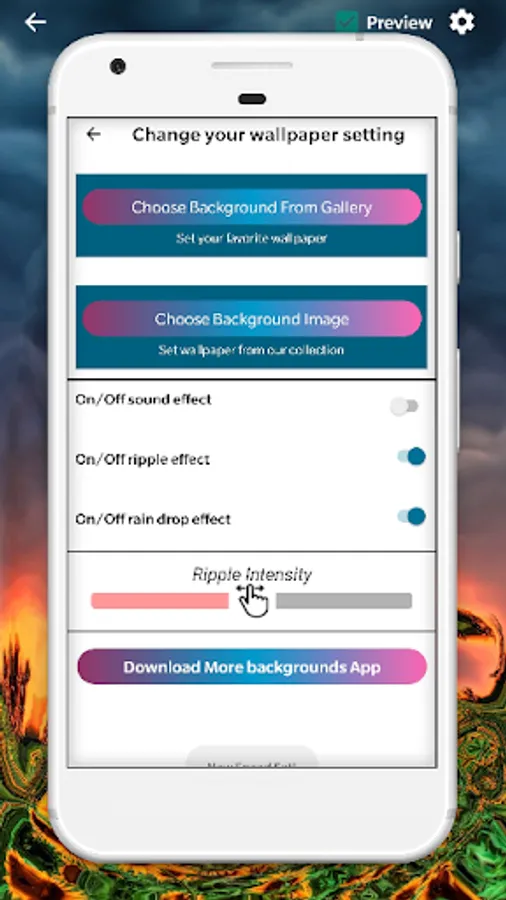 Secondly , you can enable or disable rain drop effect. With this effect of the app "nature live wallpaper" your screen automatically start rippling time to time. You will juts love it.